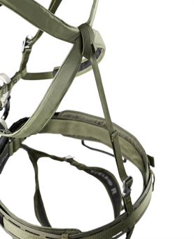 Sehr leichter, kompakter und aufs Wesentliche reduzierter Brustgurt gemäß EN 12277 Typ D, der für eine stabile Position beim Abseilen und Ablassen mit schwerem Gepäck sorgt. Der CETANA ist aus dünnem Bandmaterial (15 mm) gefertigt und verfügt über einen farblich abgesetzten Einbindering mit einem Dyneema®-Kern und Polyamid-Mantel. Der Einbindering ist zusätzlich abgenäht und verfügt somit über eine integrierte Verdrehsicherung. Dank des flachen Profils lässt sich der Brustgurt problemlos auch über Plattenträgern nutzen. Durch den rotierenden Einbindering und den symmetrischen Schnitt kann der CETANA auch umgedreht mit den Schnallen unterhalb der Brust getragen werden. Für einen optimalen Sitz kann der CETANA mithilfe eines kleinen, textilen Anbindungspunkts am Rücken mit kompatiblen Hüftgurten wie dem SHIKARI TRIPLE LOCK und SHIKARI kombiniert werden, was auch ein Verrutschen nach vorn verhindert. Mithilfe des mitgelieferten, leichten KIWI TRIPLE Karabiners mit Verdrehsicherung (KIWI CAPTIVE) lässt sich der CETANA schnell und sicher mit einem Hüftgurt verbinden.